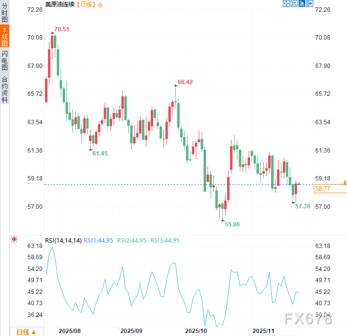 周二美原油价格于每桶58.80美元附近震荡。